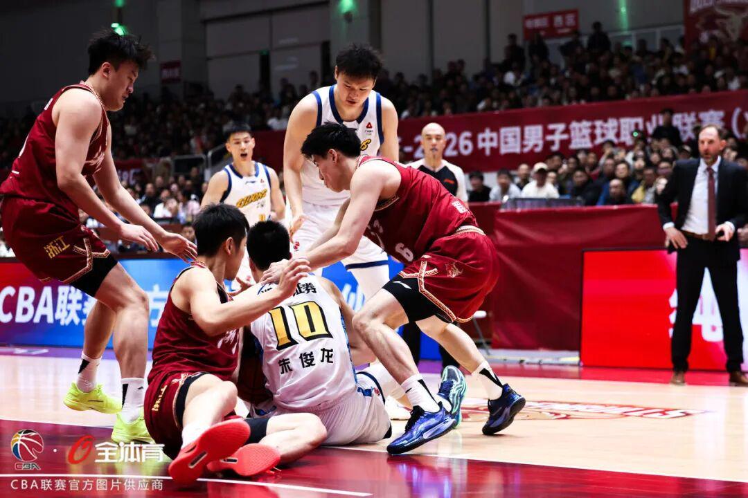 易边再战,下半场开始后两队身体对抗强度不断提升,塔克强投三分造成犯规,利用罚球得分。达卡里补篮得手,塔克借掩护干拔三分命中。胡金秋弧顶远投空心入网,程帅澎连续远投实现反超。塔克在暂停之后强杀篮下打成2+1,胡金秋抢到前场篮板,二次进攻造成对手犯规,利用罚球继续为球队追分。第三节结束,浙江浙商证券56-60落后。